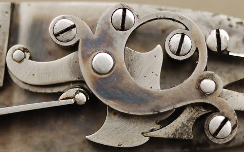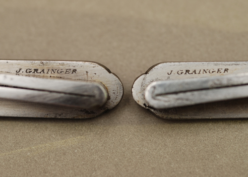 Stamped J. Grainger on the inside of the locks. I wonder if that was the engraver or maybe the guy who made the locks.