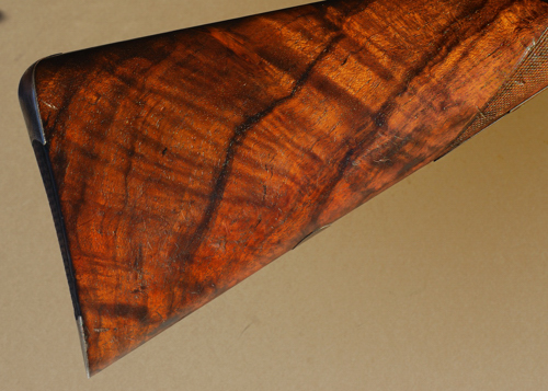 A good friend of mine does a fair amount of gun trading. Recently a fellow who sold him some stuff also threw in this wall hanger. It is a Charles Ingram 12 gauge, bar action, underlever hammer gun with replacement James MacNaughten barrels. A little internet research revealed that Chuck was born in 1816 and died in 1885. The firm Charles Ingram Gunmaker of Glasgow, Scotland began business in 1836 and closed their doors in 1945. They were known more for their target rifles than for their shotguns. My guess is that this gun, which has no nitro proof marks, was made in the late 1800’s. It has seen better days; all of the finish is gone, checkering worn smooth and the barrels are pretty rough. It is missing the right hammer and the remaining hammer had it’s spur busted off. Despite its poor condition you can see what it must have been 100 years ago. It has good dimensions and feels sleek and responsive (30″ barrels, 14 1/2 LOP, 1 5/8 DAC, 2 1/8 DAH). The build quality is very good, it seems to lock up tight and must have been a terrific bird gun in its day.