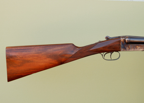 The Spanish Aguirre y Aranzabal boxlock model 4/53 has been in production since the 1960s. It is a utilitarian game gun that provides fine handling characteristics without the cost of a luxury finish. An appealing everyday working gun, this 12 gauge has the right configuration (imho) with double triggers, straight stock, splinter forend and 28″ barrels. It also has great dimensions with a 1 1/2″ drop at comb, 2 1/4″ drop at heel and a 15″ length of pull. If you try, you can find these for under $3k. A bargain for a quality double gun.