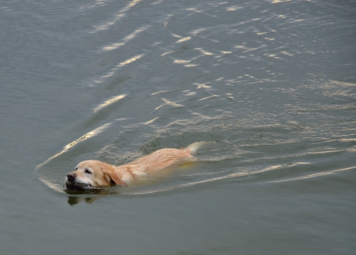 4. Get him in the water! Pepper loves to swim and retrieve. Break the wing of a chukar and toss him in. Tex will go right after him.