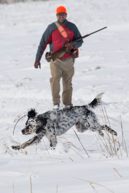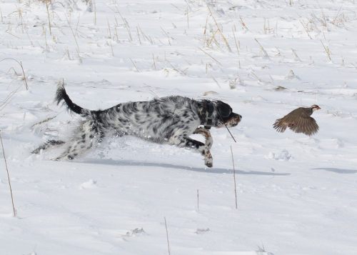 Colorado weather is awesome. This weekend was in the 80s, we wore shorts to the Rockies baseball game but last weekend we had a foot of snow! We took English Setter Oak out on that snowy Sunday for a spin on some chukars.