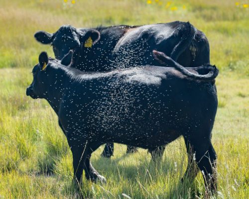 Thousands of flies and no way to swat them! That must be hell for these cows.