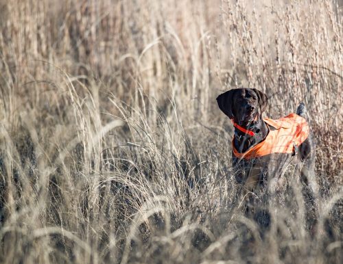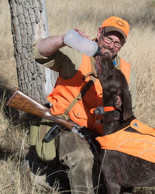 The whole season this year has been warm. It is important to keep the dogs watered. We are decked out in blaze orange because it happened to also be deer season. I did not want Tex, or myself, to be confused with a whitetail deer!