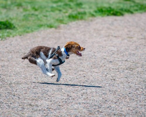 I don’t know what breed of dog this is, but this little fellow had the peddle to the mettle! He was moving as fast as I have seen any dog run. I believe he thought he was running for his life.