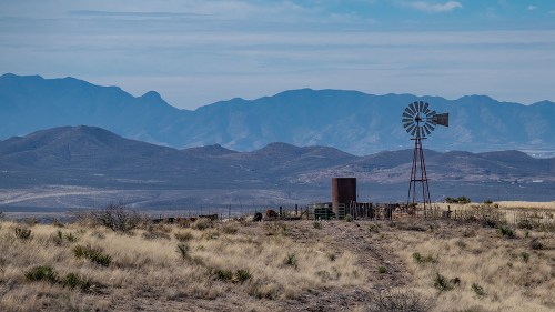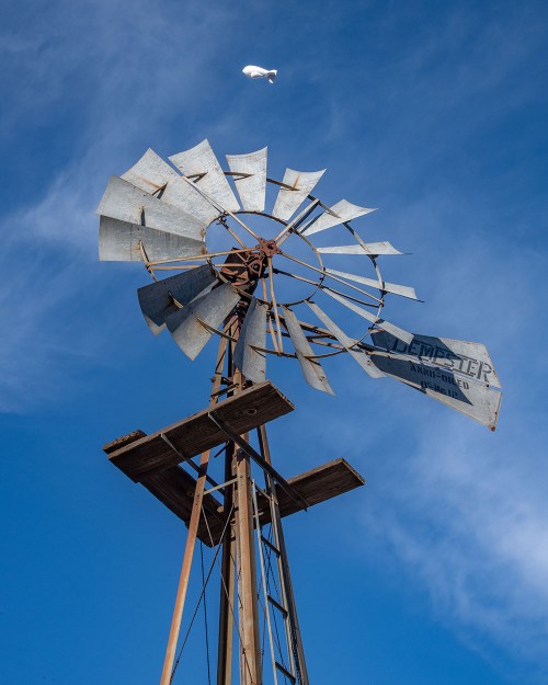 A windmill from the early 1900s and a distant TARS blimp. This is a pretty dramatic example of the advancement in technology that occurred in the last 100 years.