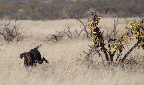Southern Arizona is a bird dog paradise! I was delighted with the absence of ground cactus that can be so terribly hard on the dogs.  But it is very rocky which can warrant booting your puppy. These sweet Brittany pointers will win your heart!