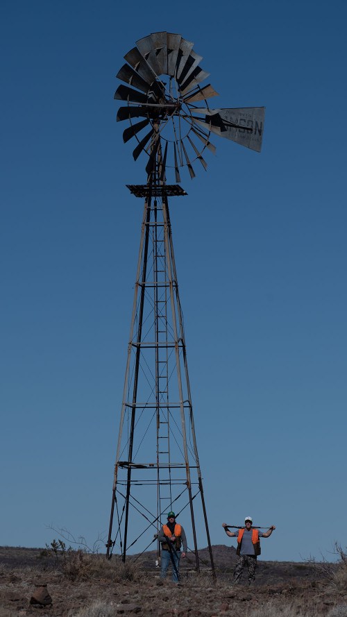 My hunting buddies at the base of the windmill. These windmills are BIG!