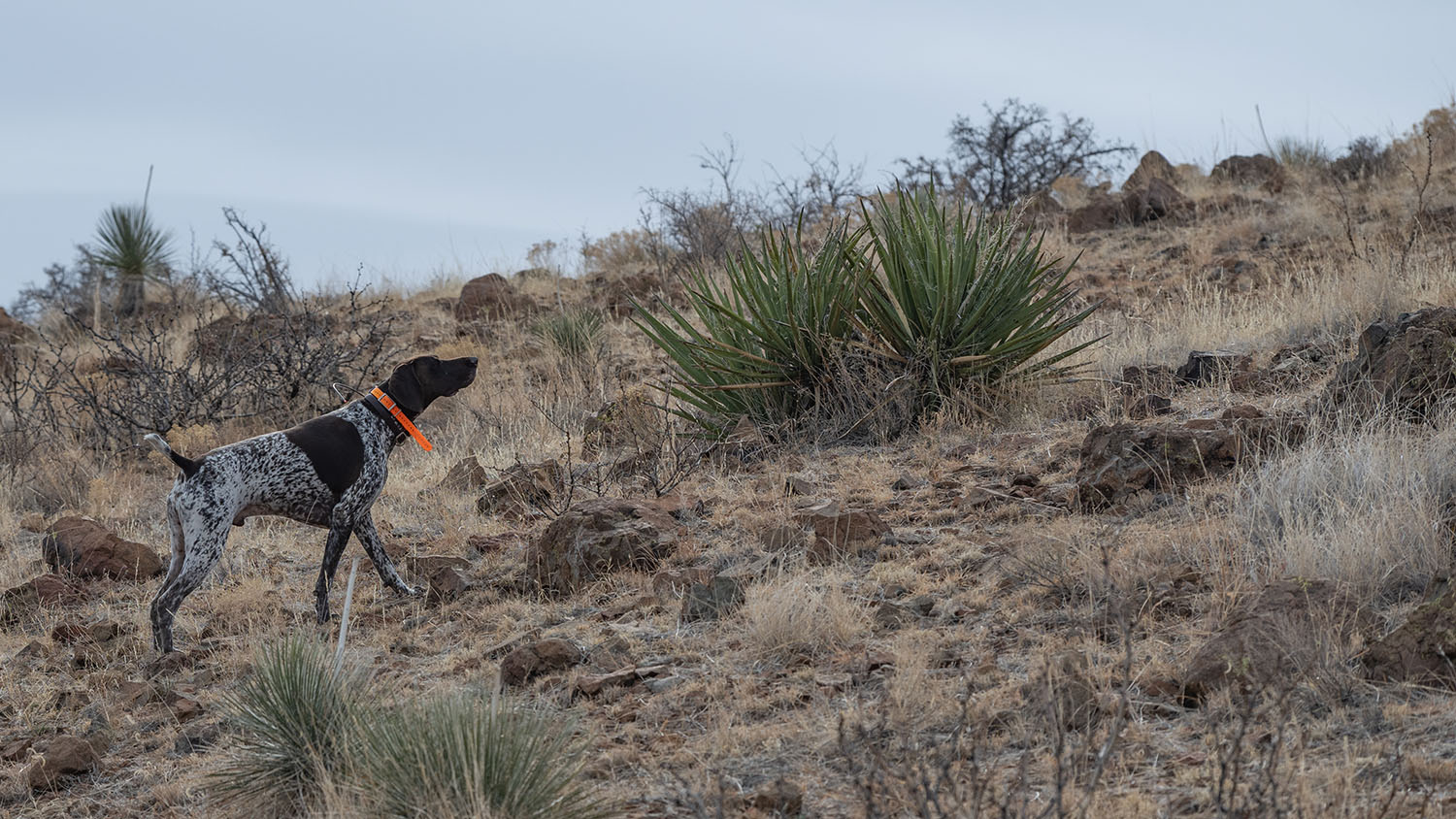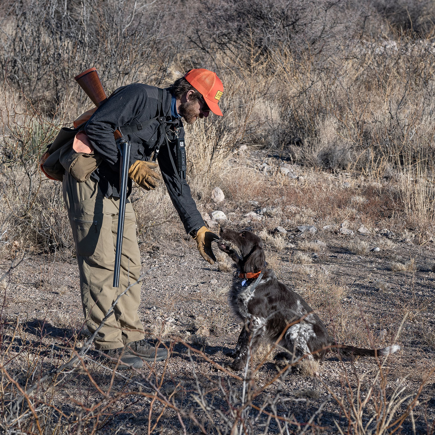 Good boy Milo delivers a Gambel’s quail to his hunting buddy.