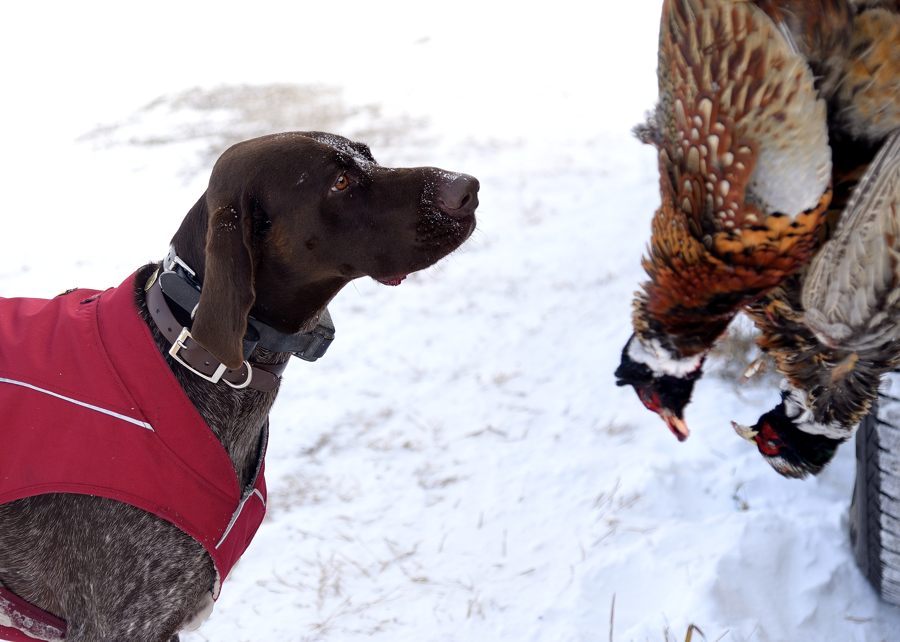 Tex in his new fleece coat. Amazingly this is not offered in blaze orange (Ruffwear).